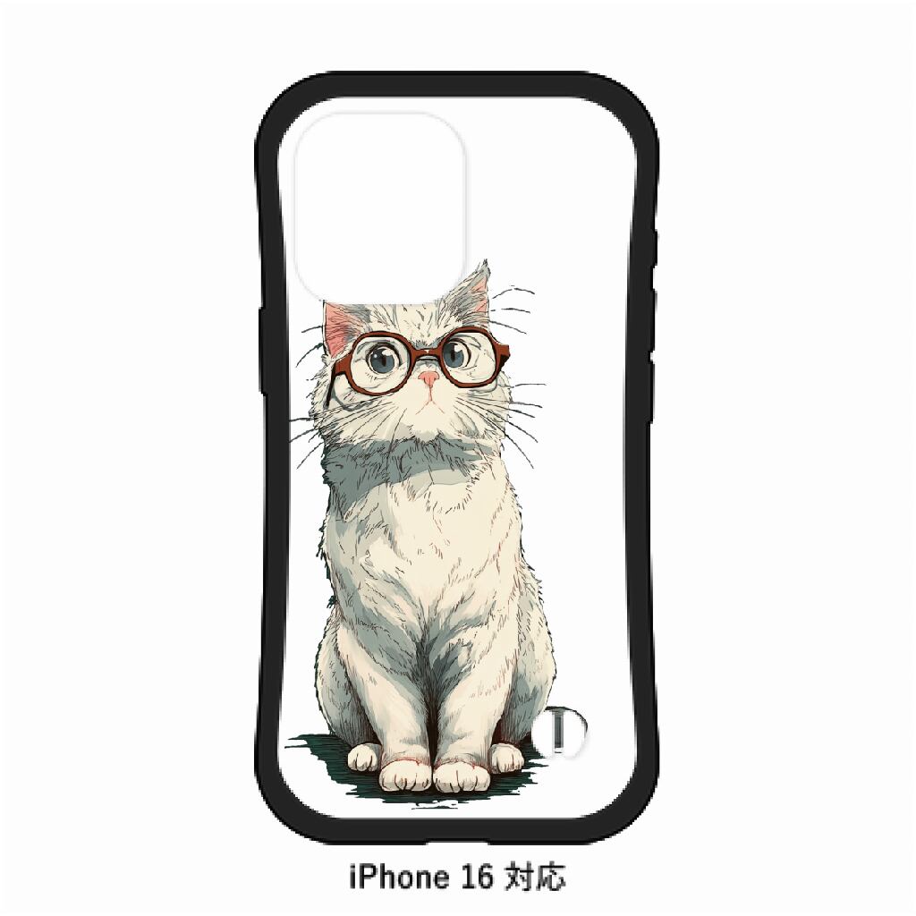 メガネをかけた白ネコ-iPhone16 耐衝撃グリップケース