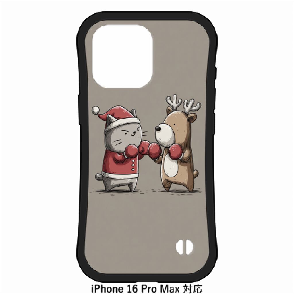 ネコサンタとトナカイの殴り合い-iPhone16 Pro Max 耐衝撃グリップケース