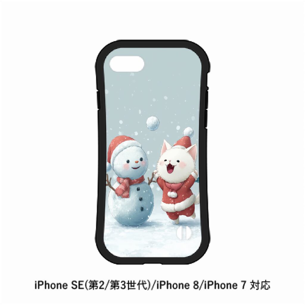 ネコサンタの雪遊び-iPhone SE(2/3)/8/7 耐衝撃グリップケース